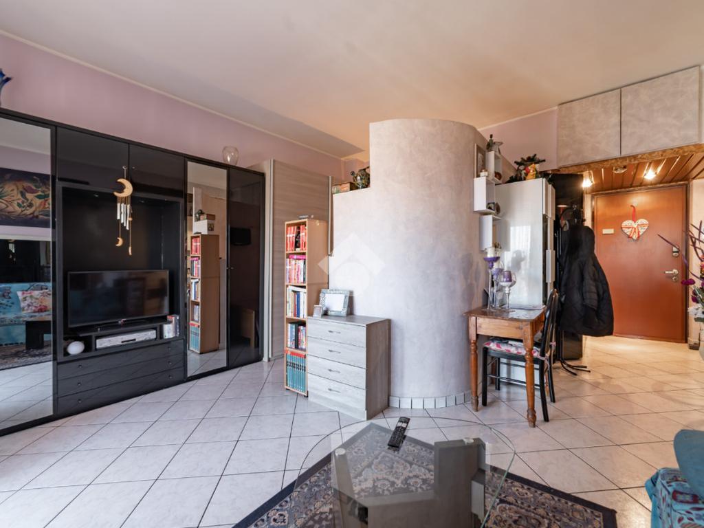 Nella frazione di Palazzolo Milanese, comodo per stazione e servizi, è disponibile un ampio monolocale di 46 mq sito ad un piano alto con ascensore, con ambienti ben organizzati che ottimizzano lo spazio a disposizione e che offrono quindi una soluzione abitativa pratica e funzionale. L'ingresso, illuminato da faretti e dotato di un pratico armadio a tre ante, sfocia sia in un comodo angolo cottura, che si integra perfettamente con l'ambiente, sia in una zona giorno e notte dove, a quest'ultima, viene garantita privacy mediante uno spazio delimitato con un muro divisorio. La comoda balconata, alla quale si ha accesso sia dalla zona living/notte che dal bagno accessoriato di doccia, è arredata con un piccolo tavolino da esterni e regala una splendida vista panoramica, offrendo uno spazio esterno privato dove rilassarsi. L'appartamento, con arredo parziale incluso nel prezzo, è dotato anche di aria condizionata, garantendo un clima confortevole in ogni stagione. La posizione strategica consente di usufruire di tutte le comodità che la zona offre, rendendo questo monolocale una scelta interessante per chi desidera vivere in un contesto urbano ben collegato, con la stazione ed i vari servizi a breve distanza, rendendo gli spostamenti quotidiani semplici e veloci. Completa il tutto la cantina al piano seminterrato e la possibilità di parcheggiare l'auto negli appositi spazi pubblici adiacenti il condominio.